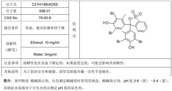 Bromocresol green溴甲酚绿 | 细胞染色剂 | 溴甲酚蓝 | 酸碱指示剂CAS 号: 76-60-8