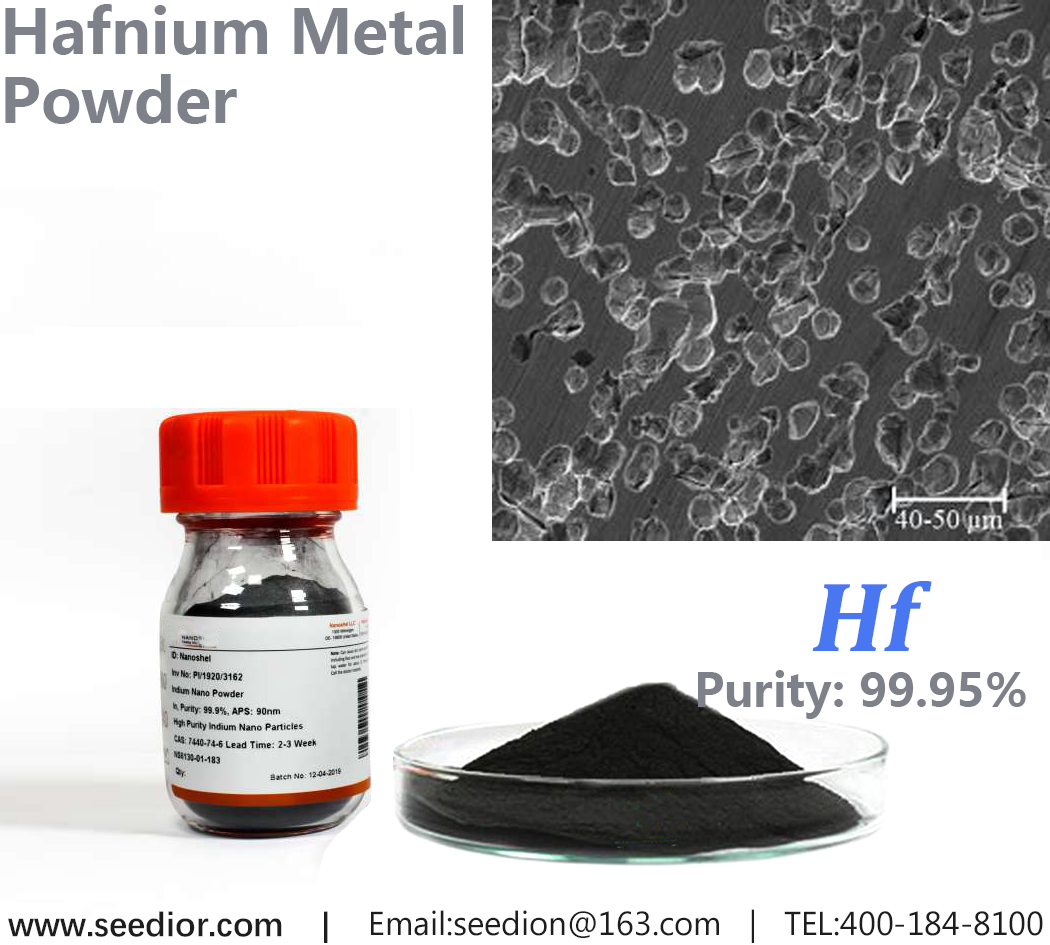 纯度: 高纯(GDMS检测99.95%)、氧含量低(200-2000ppm)、粒径分布集中、流动性好(11.8S/50g);外观:有光泽的浅灰色粉末; 具有良好的抗腐蚀性能,铪的热中子捕获截面大,有快速吸热和放热的性能. 应用方向:超高温结构材料,碳碳复合材料改性剂,可以用作X射线管的阴极 光伏制造业中常见的电子材料。铪是一种良好的合金材料,具有很强的延展性 抗氧化能力。