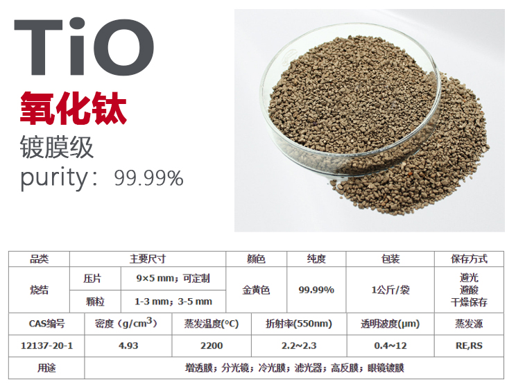 Titanium(II) oxide | TiO一氧化钛颗粒 | 氧化钛 光学镀膜级CAS 号: 12137-20-1