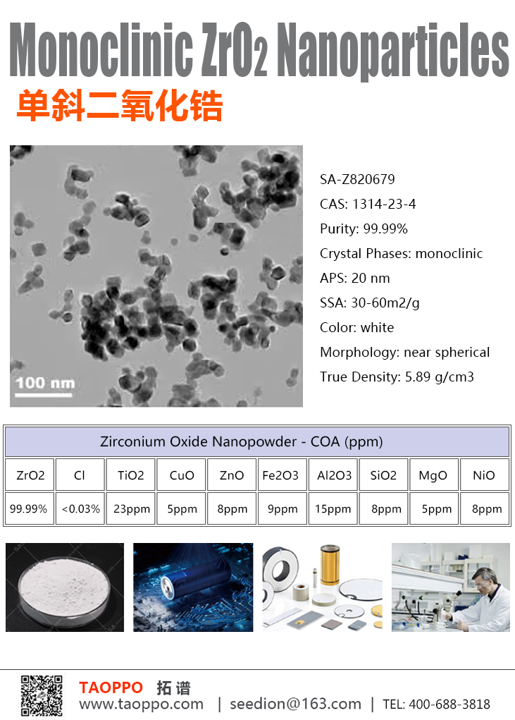 Monoclinic ZrO2 Nanoparticles纳米二氧化锆 | 单斜相氧化锆 | APS :20nm、50nm、100nm、200nmCAS 号: 1314-23-4