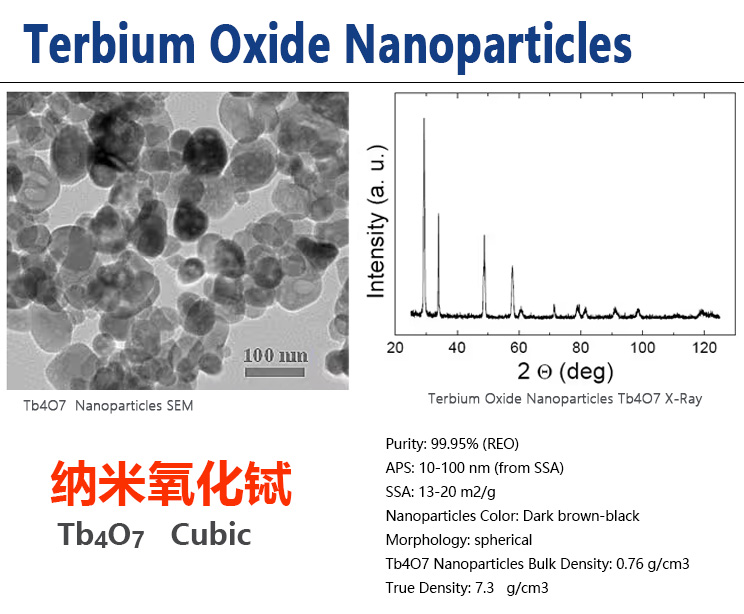 Terbium Oxide Nanopowder | Tb4O7纳米氧化铽 | 氧化铽纳米晶CAS 号: 12037-01-3