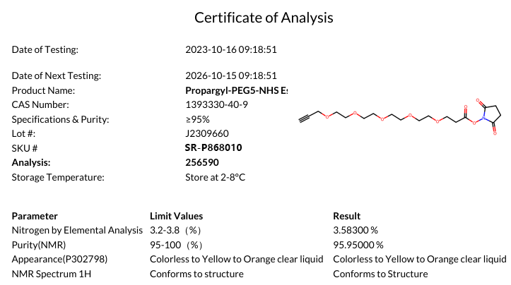 Propargyl-PEG5-NHS Ester炔丙基-PEG5-NHS酯CAS 号: 1393330-40-9